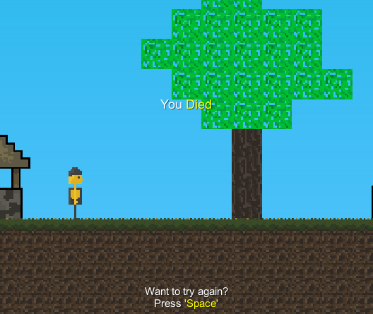 마지막으로 UI Canvas를 사용하여 플레이어가 죽었을 때를 보여주는 화면 라벨과 레벨을 다시 시작하기 위해 눌러야 할 버튼을 나타내는 표시를 만들었습니다.
