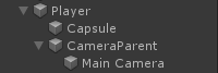 - 새 GameObject를 생성하고 이름을 "CameraParent"로 지정한 다음 "Player" Object 내부로 이동하고 위치를 (0, 1.64, 0)으로 변경합니다.