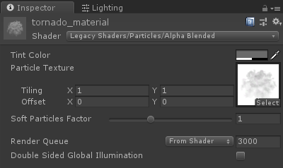 - 셰이더를 다음으로 변경하세요. "Legacy Shaders/Particles/Alpha Blended"